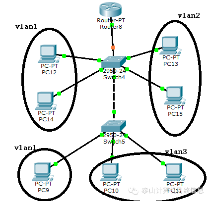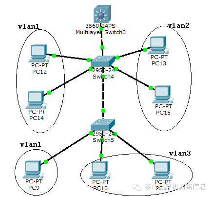 1、實現局域網不同vlan間路由。網絡現有vlan1、vlan2和vlan3三個vlan,vlan1配置192.168.1.0網段,vlan2配置192.168.2.0網段,vlan3配置192.168.3.0網段。拓撲圖如下所示: