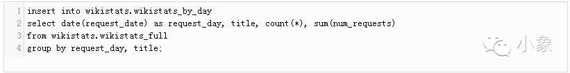 下一步是應用模式(declare fields);我們還能使用其他函數,比如用urllib.unquote來解碼標題(urldecode)。最終,我們可以注冊臨時表格,然后使用熟悉的SQL來完成分組。